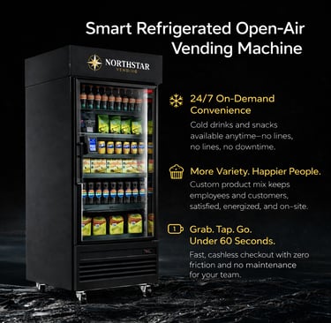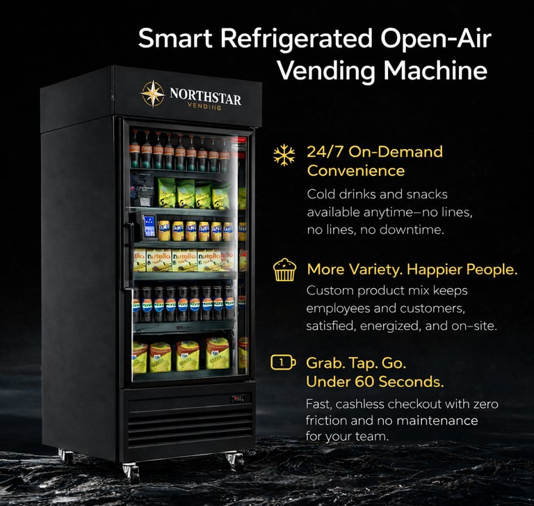“NorthStar brings 24/7 smart cooler vending to offices, plants, dealerships, and residential buildings—installed free with fast local support.”